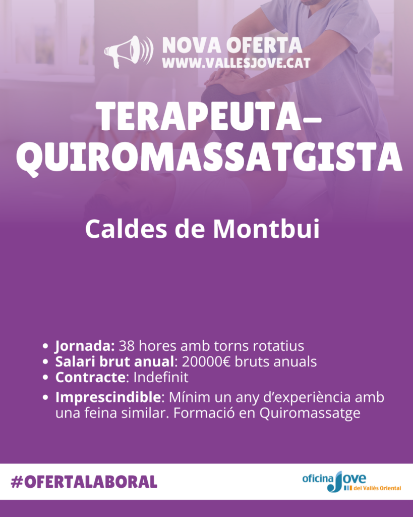 Es busca terapeuta-quiromassatgista per a Balneari a Caldes de Montbui.